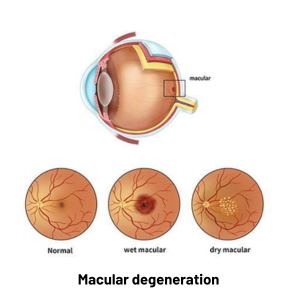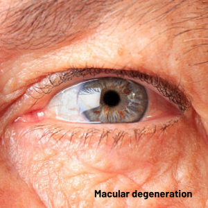 Macular degeneration is an eye disease that affects central vision. This means that people with macular degeneration can’t see things directly in front of them. This common age-related eye condition mostly occurs in people over the age of 50.