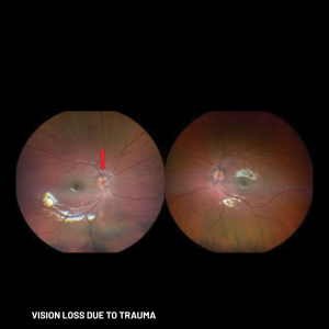 There can also be complete loss of vision in one or both eyes depending on the injury.